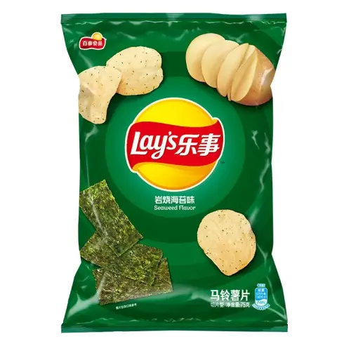 Lay's Seaweed er den kinesiske varianten med smak av ristet tang – umamiring, salt og med en distinkt havsfølelse i hvert chips. Sprø potatischips med en dyp, asiatisk smakprofil som tar snacksen til et helt annet nivå. 🌊🥬