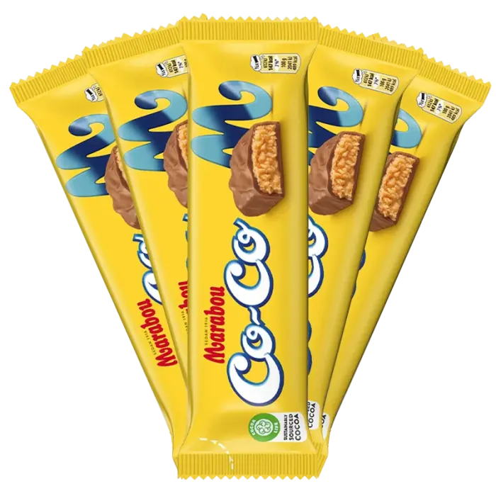 Marabou Co-Co er en herlig kokoskrem dekket med vår elskede Marabou melkesjokolade, som får deg til å drømme deg bort til eksotiske steder.
