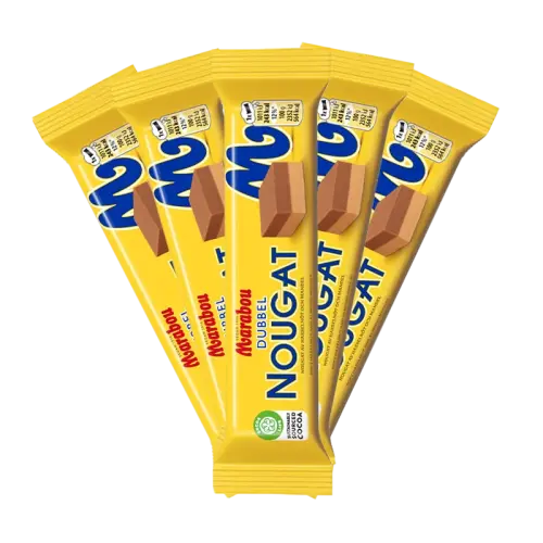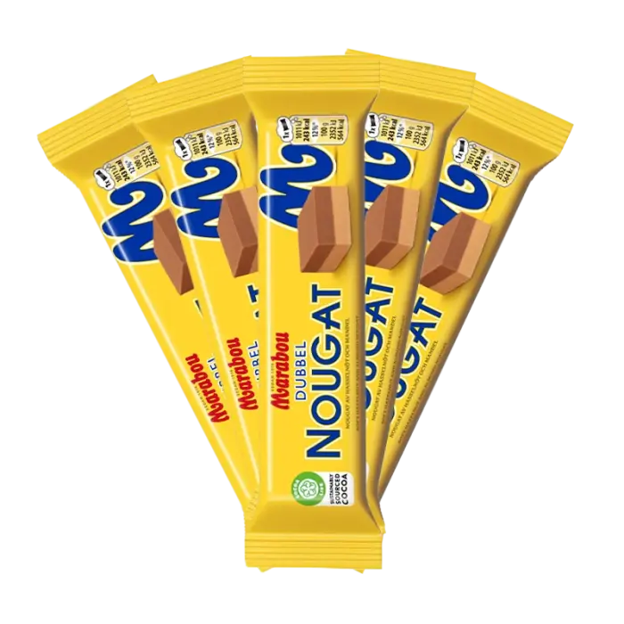 Socker, HASSELNÖTTER/-NØDDER (18%), vegetabiliskt fett/fedtstoffer (palm/palme, shea), MANDEL (9,5%), vassle-/vallepulver (MJÖLK/MÆLK), kakaomassa, kakaosmör, SKUMMJÖLKS-/SKUMMETMÆLKSPULVER, SMÖRFETT/SMØROLIE, emulgeringsmedel/emulgatorer (SOJALECITIN, E476), aromer. KAN INNEHÅLLA JORDNÖTTER, ÄGG OCH VETE/JORDNØDDER, ÆG OG HVEDE.