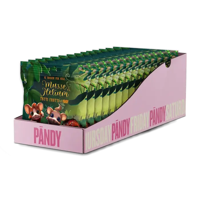 Mickey & Helium er to søskenmus fra den magiske eventyrverdenen, mest kjent fra bokserien til skaper og forfatter Camilla Brinck. Vi får følge dem gjennom fargerike eventyr sammen med vennene deres i alle forskjellige eventyrverdener der empati og humor er i fokus.Denne posen inneholder gelégodteri i fruktige smaker.