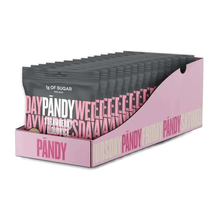 Polydextros (fiber), isomalto-oligosackarider*, sötningsmedel (erytritol, acesulfam-K, sukralos), vatten, gelatin (nöt), lakrits, surhetsreglerande medel (E296), aromer, färgämnen (E153, svart morot), ytbehandlingmedel (erytritol, E296, E903), salt. *Glukoskälla/en kilde til glucose.