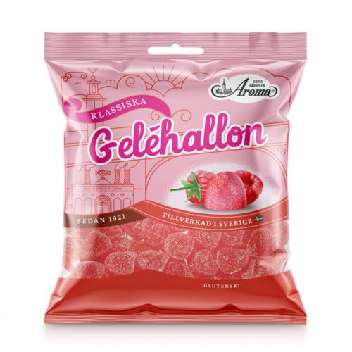 Aroma Gelehallon er den klassiske svenske bringebærfavoritten som smaker sommer! Myke, søte gelebringebær med intens bringebærsmak og lett syrlighet som får deg til å lengte tilbake til sommerferien. Perfekt balanse mellom søtt og syrlig, med den typiske gelékonsistensen som gjør dem umulige å slutte å spise. Svensk, nostalgisk og alltid like godt - noen klassikere trenger aldri å endres!