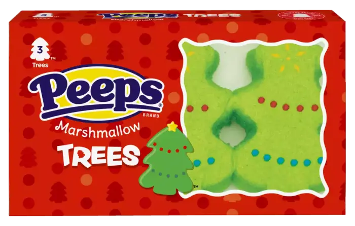 Peeps Christmas Trees er klassiske amerikanske marshmallow-godteri formet som juletrær. Myke, luftige og dekket med sukker. Perfekt til julekaffien eller som søt dekorasjon på kakefatet. En juleversjon av den elskede Peeps-klassikeren som sprer julestemning med hver bit. Like søte å se på som å spise!