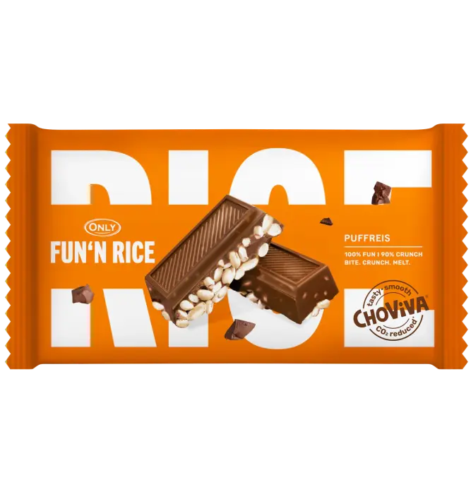 Only Fun N Rice er sprøtt puffet ris som møter myk ChoViva - helt kakaofritt men fullt av smak! En innovativ sjokoladeopplevelse uten kakao som smaker som sjokolade men er bedre for miljøet. Perfekt for deg som vil ha noe godt med ren samvittighet. Fremtidens sjokolade er her!