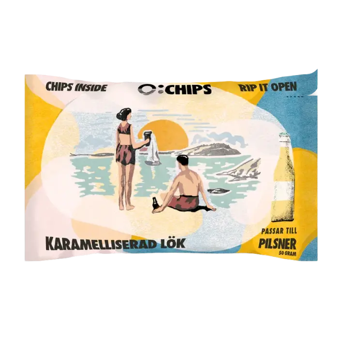 Ö-Chips Karamelliserad Lök er en smakbombe der bacon, cheddar og het saus spiller hovedrollene! Røkt bacon danser med kremete cheddar mens het saus legger til akkurat den kicken som får deg til å ville ha mer. Hver sprø bit er en balansert orgie av smaker som roper etter en iskald lys lager. Perfekt til kampen, grillen eller bare når du vil ha chips som mener alvor. Dette er pub food på sitt beste!