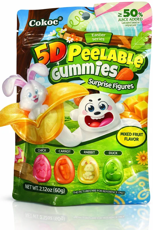 BeskrivelseforCokoc 5D Peelable Gummies Mixed Fruit Påsk 60g