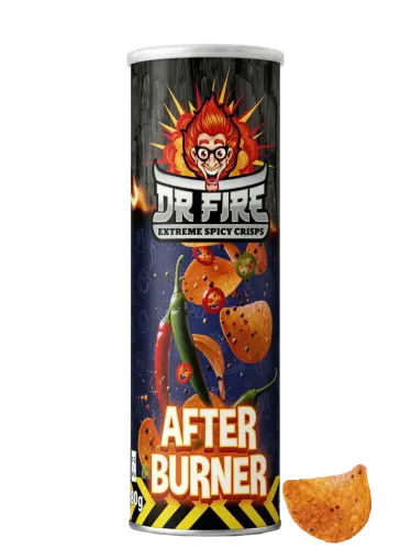 Etterbrenningen som ikke gir seg! Dr Fire Extreme Spicy Crisps After Burner er chips som fortsetter å brenne lenge etter siste bit. Ekstremt hete og krydrete chips med flere lag av hetta - perfekt for deg som synes at vanlige sterke chips er for tamme. Advarsel: hettan vokser for hver bit og slipper ikke taket! 🔥💀