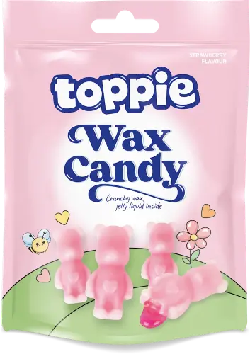 Bjørner med hemmelig fylling! Toppie Wax Candy Strawberry er de søte bjørnene med sprø voksskall og geléaktig jordbærvæske inni. Først biter du, så eksploderer smaken! Perfekt for barn som elsker både bjørner og godteri, eller voksne som husker Wax Bottles fra før. Liten bjørn, stor smaksopplevelse! 🐻🍓