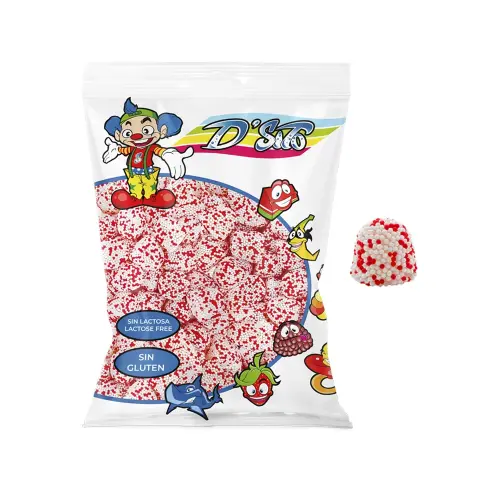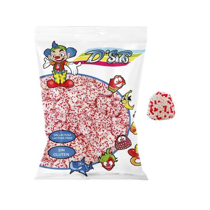 Jordbærkrem i bjørnebærform! D'Sito Blackberries Strawberry Cream er gelégodteriet formet som bjørnebær med myk jordbærkremgelé inni dekket med perlesukker. Myke, søte og kremete - laktosefrie og glutenfrie. Perfekt til bursdager og fester! 🍓💗