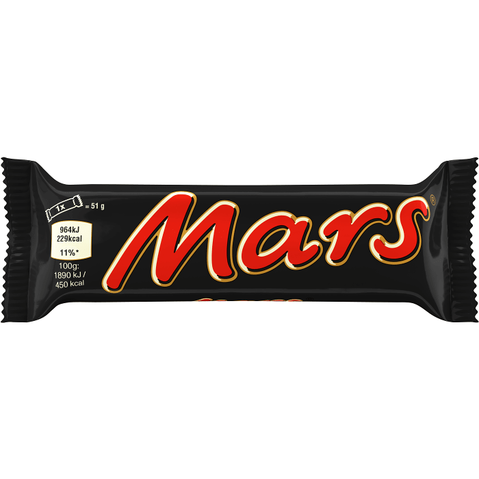 Mars er en av verdens mest ikoniske sjokoladebarer – myk nugatkjerne, seigsøt karamell og et ytre lag melkesjokolade. En klassiker som aldri går av moten, enten du trenger en pause midt på dagen eller bare vil kose deg litt. 🍫