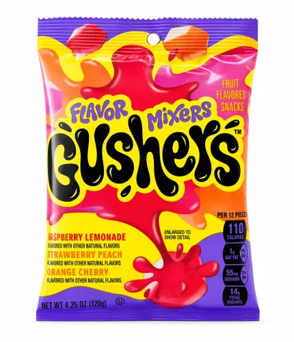 Gushers Flavor Mixers er de ikoniske fruktgodisene med flytende fyll som spruter ut ved første bit – nå med tre smaker i samme pose: bringebær limonade, jordbær fersken og appelsin kirsebær. Blandet, fruktig og like eksplosivt godt som alltid. 🍓🍊💥